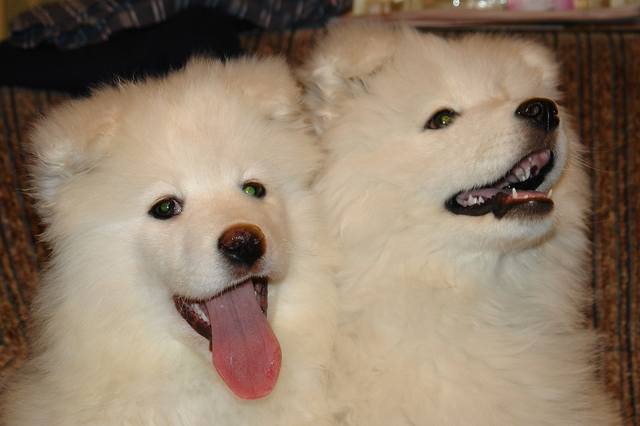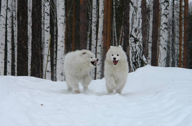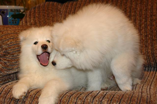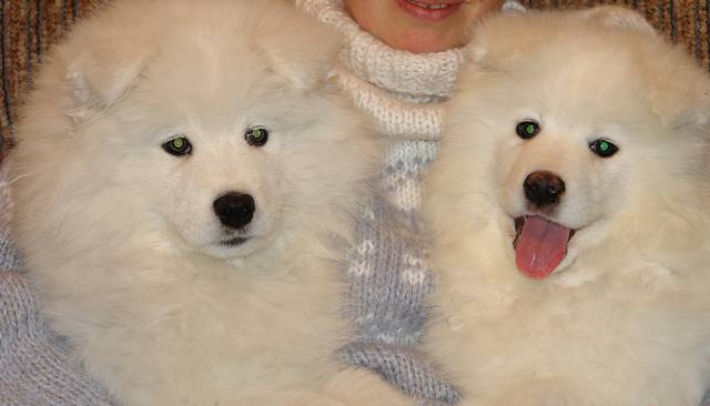 И вот, под Новый 2008 год в нашей семье появился чудесный белый комочек – самоедик Саммик. Самый-Самый (родители Хаккер Норд Стар и Русбрискази Снежная Королева). Это было такое огромное счастье! Невозможно передать какие положительные эмоции этот чудесный щенок дарил нам каждый день! А через месяц мы решили, что было бы здорово, если самоедов стало двое. Так в нашей семье появилась сестренка-однопометница Самы – Сильва. К сожалению, Саммика год назад не стало, но я не могу не написать о нем, мысленно он всегда рядом. И на фотографиях наши собаки почти всегда вместе.