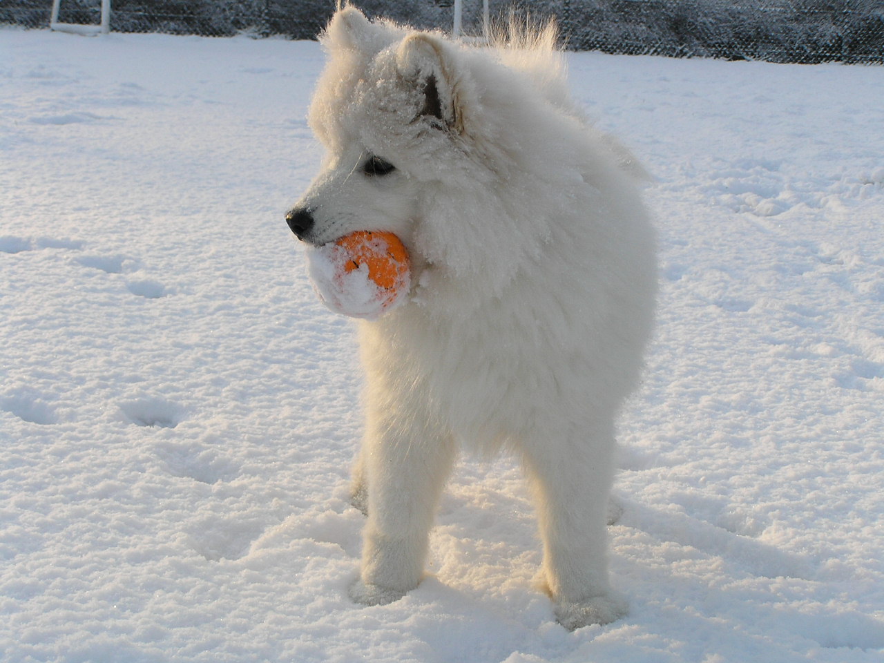 | Так она здорово с мячиком играет! Самоед на снегу - это красиво! Quote (kakuke) Кстати у нас небольшой прогресс. Молодцы!!!! Все наладится! Главное, что бы у соседей терпения хватило. Quote (kakuke) Вот на фотке очень хорошо видно, что репка у нас не белая Во-первых, это свет так упал. Во-вторых, это щенячий пух - он еще поменяется. Не переживай раньше времени!!!!